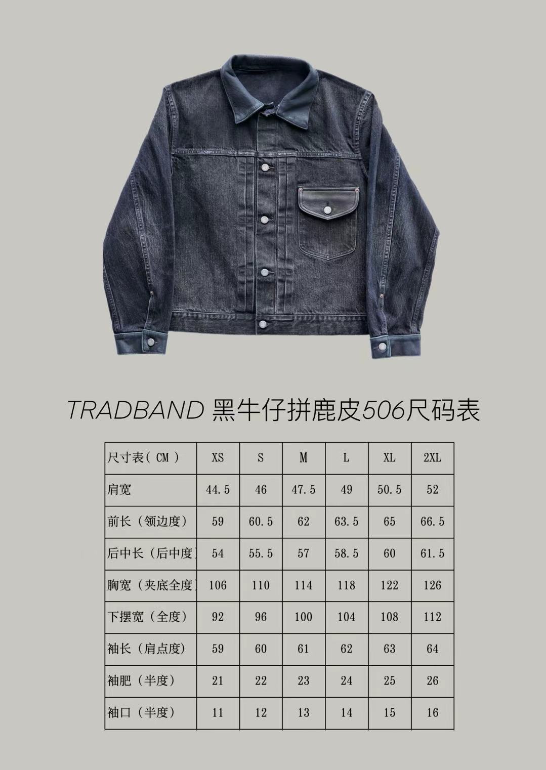 TRAD BAND black denim and deerskin 506 are on sale, washed and distressed! Size: S-XL, please note for special sizes.