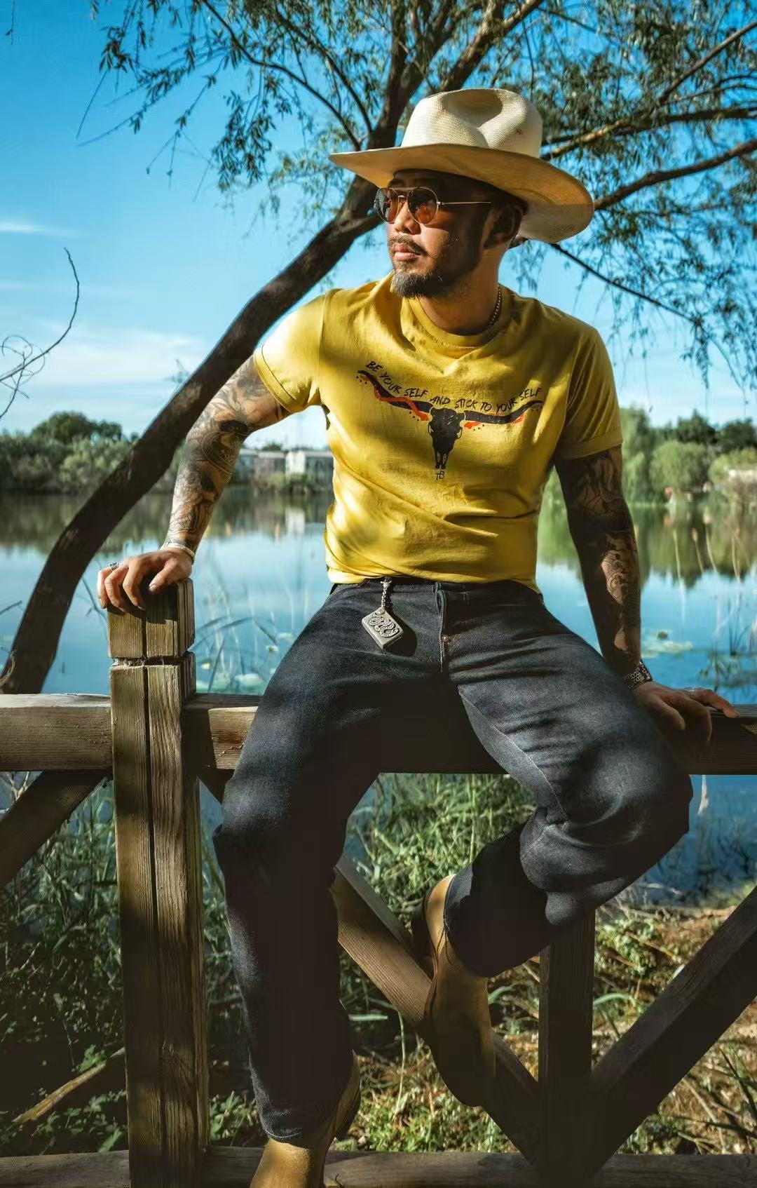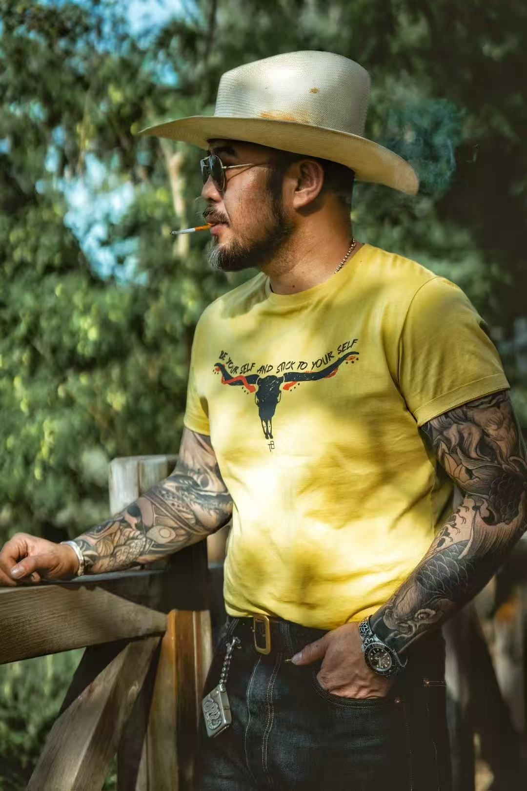TRAD BAND WESTEN VINTAGE TEE Bullhead Double Snake American Retro