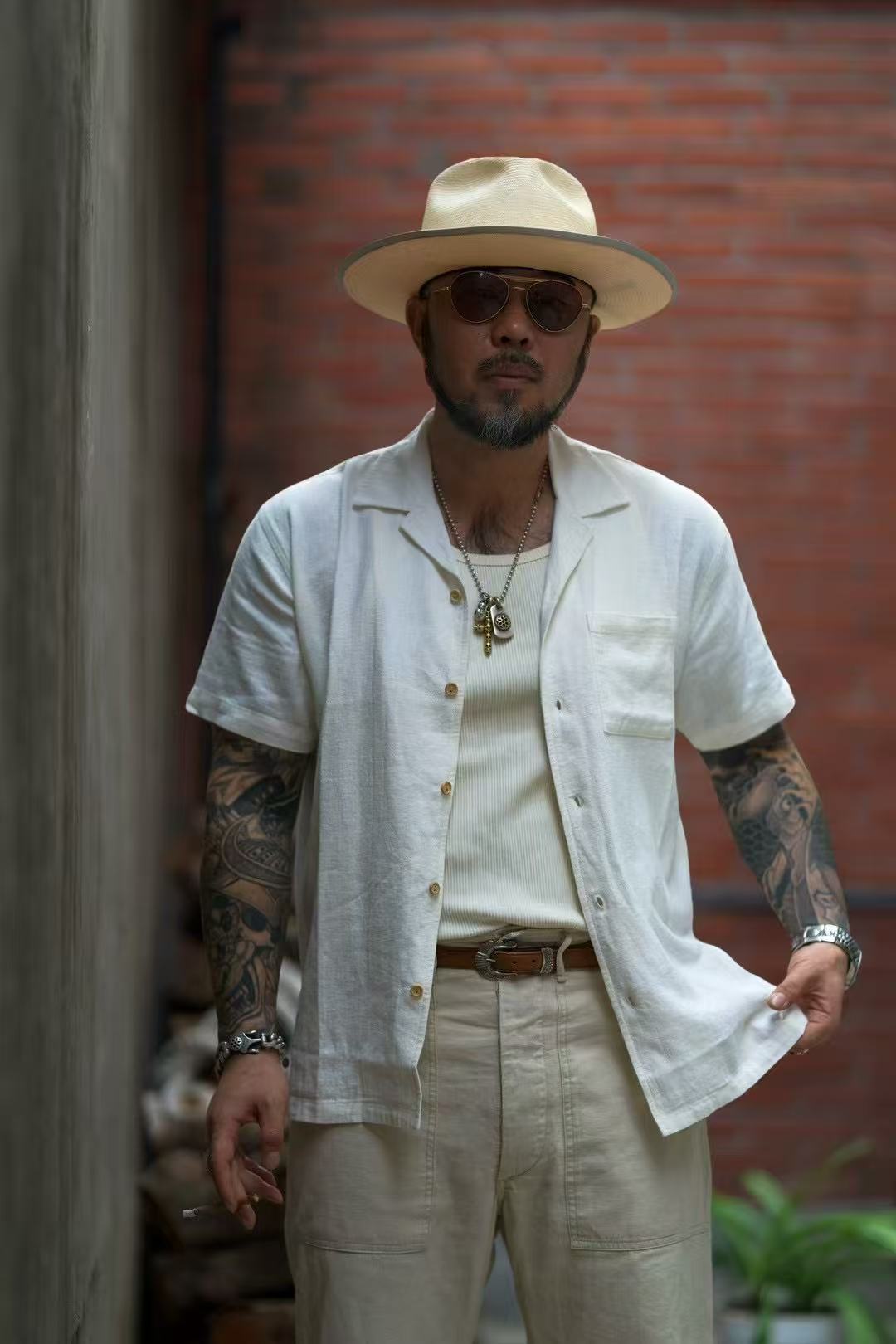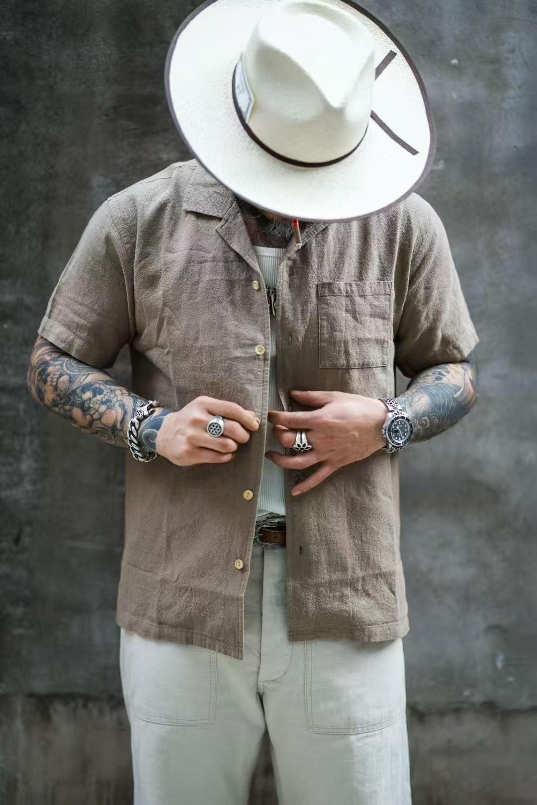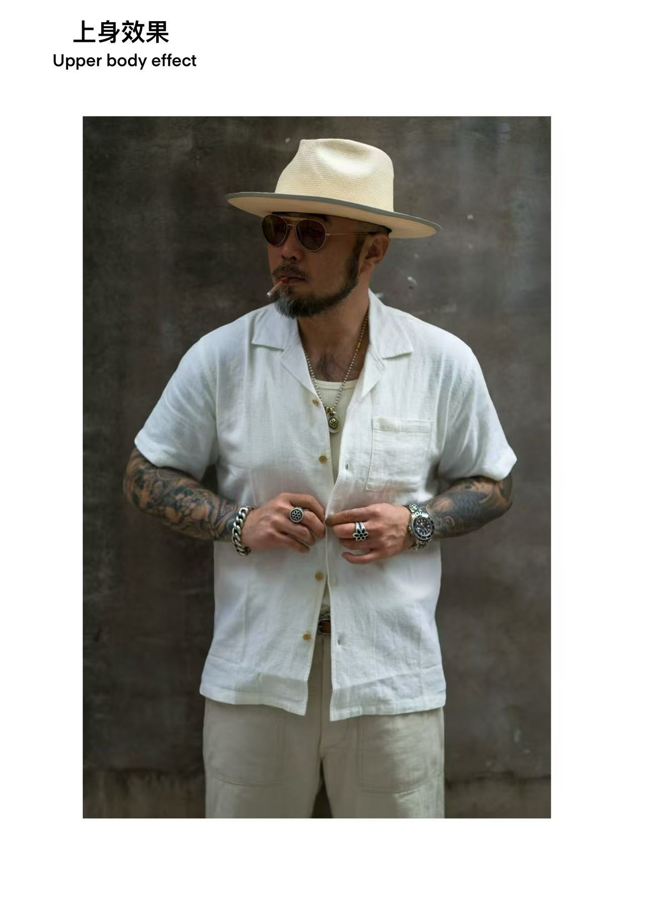 Be the first to review “TRADBAND 2025 Spring/Summer Linen Cuban Collar Shirt, Elegant White and Jungle Brown”